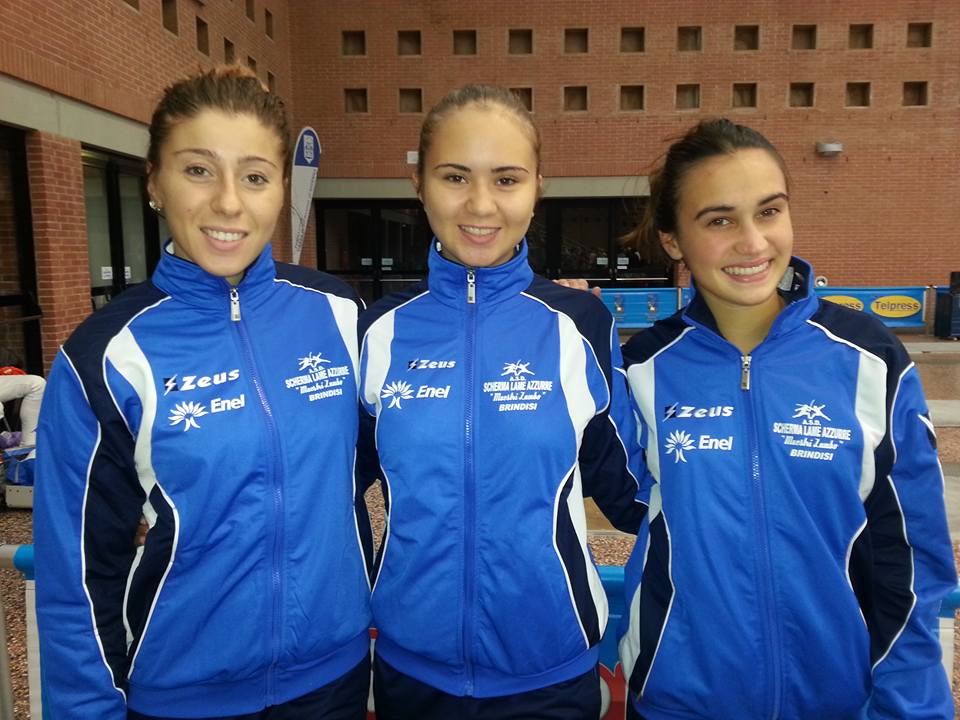 Nel corso della prima prova nazionale open assoluta che si e’svolta a Ravenna sabato 10 e domenica 11 novembre 2015 gli schermidori dell’Enel scherma lame azzurre Brindisi dei “maestri Zumbo” hanno ottenuto ottimi risultati in particolare con Mariella Gigliola che ha sfiorato l’accesso nelle prime 8 del torneo, l’atleta brindisina è stata l’unica pugliese ad accedere al tabellone principale nella gara femminile, chiudendo al 14° posto. Esentata dal primo turno della diretta, ha battuto nell’ordine Roberta Nesti (C.S. Partenopeo) per 15-8, Giulia Giorgione (Pro Vercelli) per 15-10, e Tecla Carrubba (Mangiarotti Milano) all’ultima stoccata prima di cedere 15-9 negli ottavi per mano di Rossella Fiamingo, l’azzurra in forza al G.S. Forestale e pluricampionessa mondiale che aveva chiuso la fase a gironi al primo posto del seeding.