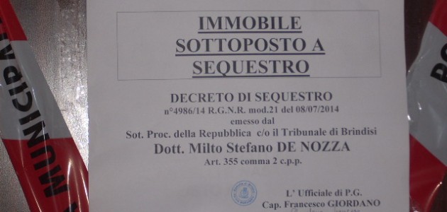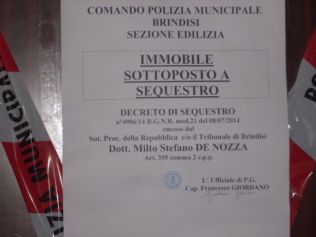 Su disposizione della locale Procura della Repubblica presso il Tribunale di Brindisi, gli agenti della Polizia Municipale di Brindisi hanno apposto i sigilli alla porta principale di accesso poiché il proprietario si è reso responsabile della violazione di aver realizzato opere edilizie senza alcuna autorizzazione.