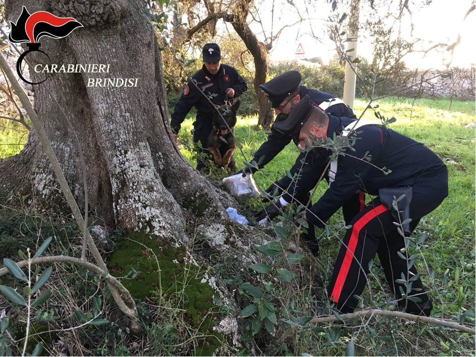 Particolare importante concerne lo stupefacente – celato in vari involucri all’interno delle cavità di un tronco di ulivo secolare –, rinvenuto grazie al mirabile fiuto dell’unità antidroga dei Carabinieri del Nucleo Cinofili di Modugno.