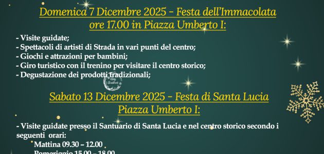 La Pro Loco di Erchie è lieta di annunciare l’iniziativa “Luci di Natale: Le Tradizioni di Santa Lucia, l’Immacolata e l’Epifania”, un ricco programma di eventi che animeranno il centro storico del paese, celebrando il periodo festivo con un focus sulla cultura, l’enogastronomia e le tradizioni locali.