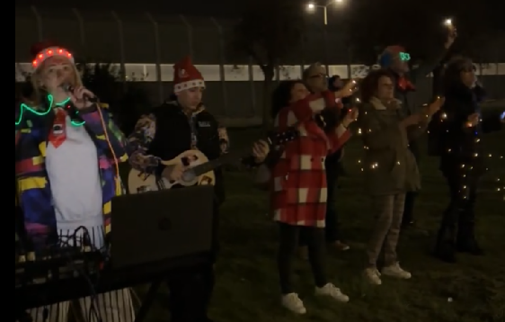 Intorno alle 20:00 il piazzale si è acceso di piccole luci a batteria, indossate come segni visibili di presenza e speranza. Poi, puntuali, i canti di Natale: voci semplici, unite, capaci di arrivare fin dentro le stanze dell’ospedale. Molti pazienti si sono affacciati alle finestre, seguendo con attenzione e partecipazione l’iniziativa, manifestando apprezzamento con sorrisi, gesti di saluto e applausi.