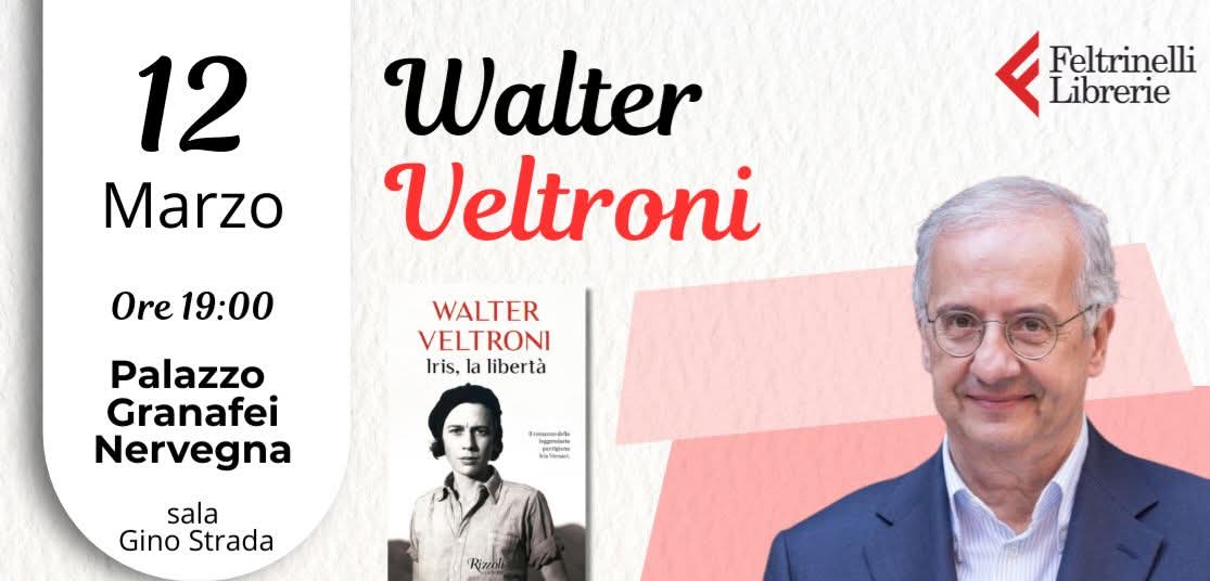 Il giornalista, politico, scrittore e regista, Walter Veltroni sarà ospite a Brindisi, giovedì 12 marzo alle ore 18.30 presso la Sala “Gino Strada” di Palazzo Granafei Nervegna, per presentare il suo libro “Iris, la libertà” ed. Rizzoli.