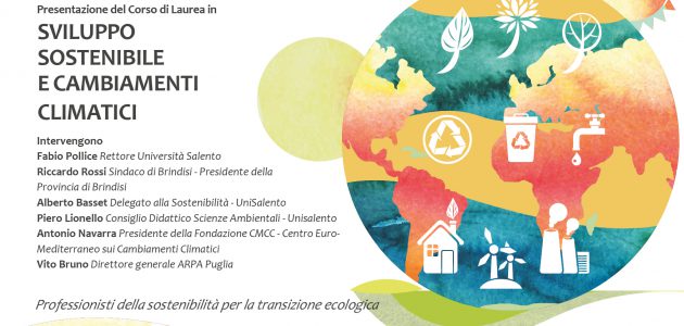 Mercoledì 14 luglio, alle ore 11 presso la sala Università di Palazzo Nervegna, si svolgerà la presentazione del nuovo corso di laurea dell’Università del Salento “Sviluppo sostenibile e cambiamenti climatici”.