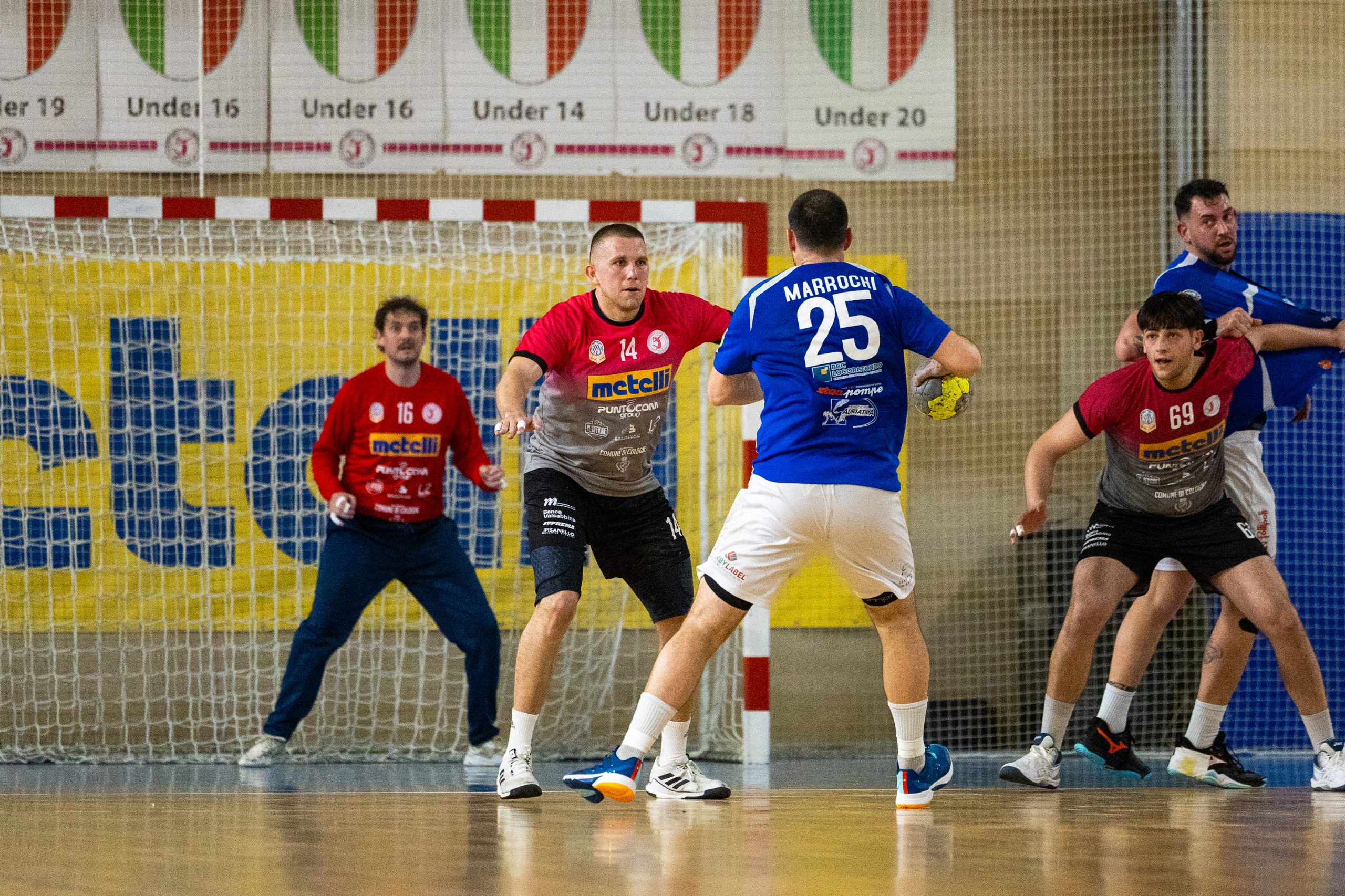 Chiusa la prima frazione sul 16-9, la formazione lombarda gestisce senza particolari affanni anche gran parte della ripresa, toccando anche il +9 al 43’ (23-14). Solo nell’ultima parte del match la Junior riesce a mettere pressione alla compagine allenata da Davide Campana, ricucendo fino al -5 del 22’ (26-21), ma non andando oltre nella rimonta. La Metelli nei minuti conclusivi torna infine sul +7 (30-23 al 58’), divario sul quale si conclude l’incontro (31-24).