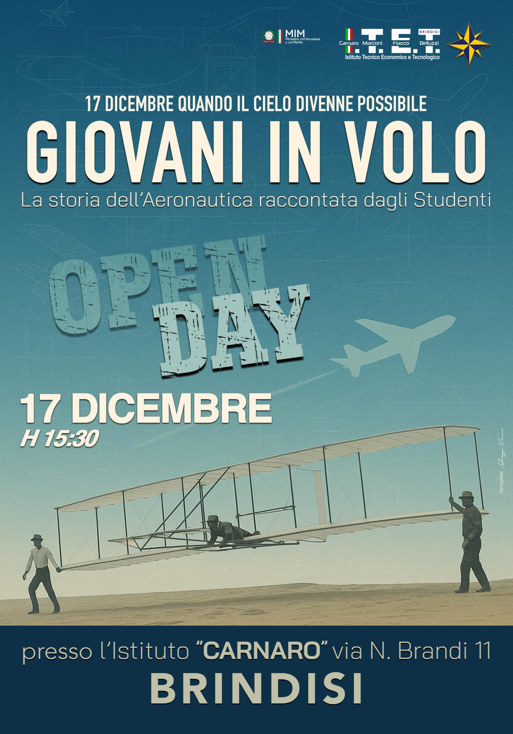 Gli studenti e le studentesse dell’articolazione Aeronautico dell’ITET Carnaro Marconi Flacco Belluzzi, in data 17 dicembre 2025, dalle ore 15.30 alle ore 18.30, per celebrare questa storia, allestiranno una mostra con video, presentazioni e modellini attraverso i quali saranno ripercorse le tappe evolutive del volo.