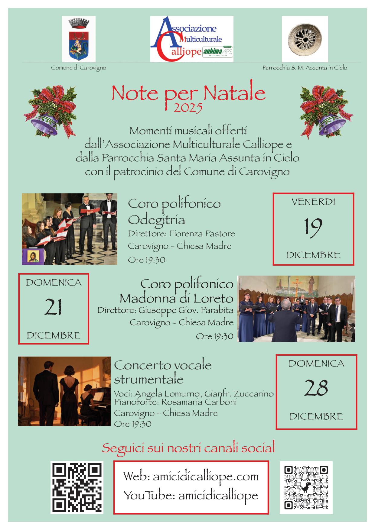Carovigno ha vissuto la magia del Natale attraverso la musica con “Note per Natale 2025”, rassegna di momenti musicali promossa dall’Associazione Multiculturale Calliope e dalla Parrocchia Santa Maria Assunta in Cielo, con il patrocinio del Comune di Carovigno.