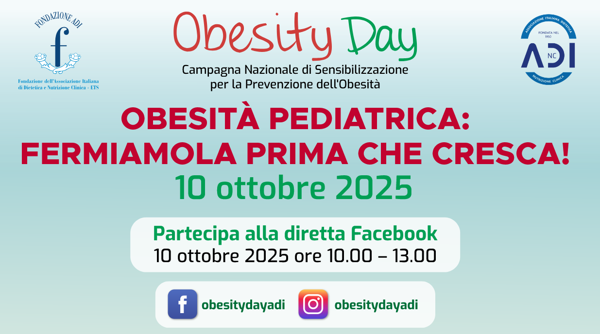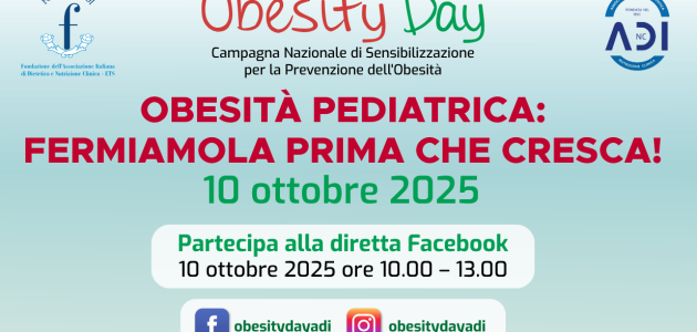 L’iniziativa si inserisce nell’ambito della 25esima edizione dell’Obesity Day, la campagna nazionale di sensibilizzazione sull’obesità promossa dall’Adi, l’Associazione Italiana di Dietetica e Nutrizione Clinica, attraverso la sua fondazione.