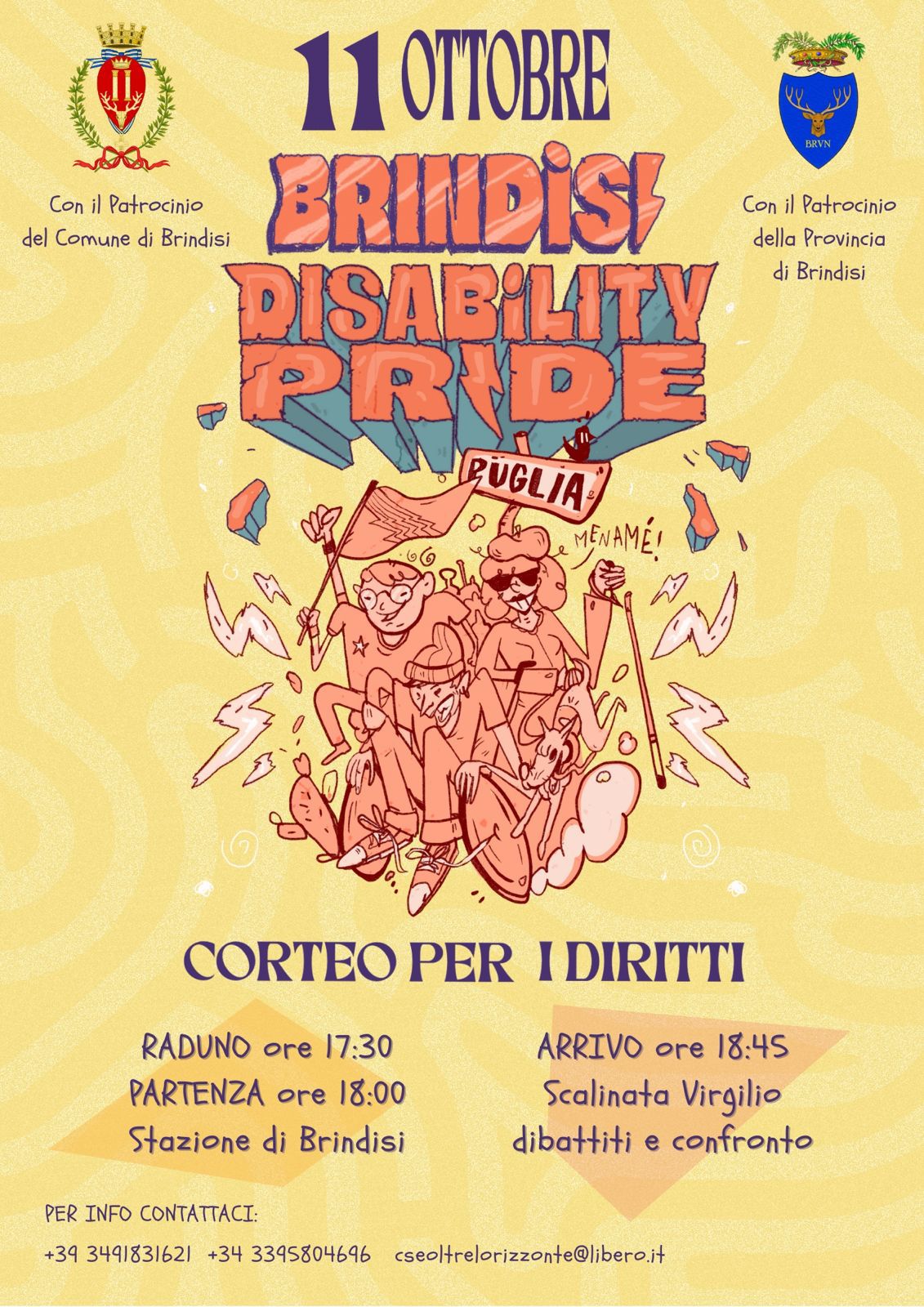 Sabato 11 ottobre 2025, alle ore 18,00, il centro di Brindisi sarà attraversato dal Disability Pride, una manifestazione pubblica che mette al centro le persone con disabilità, la loro autodeterminazione, i diritti e la piena partecipazione alla vita sociale, culturale e politica.