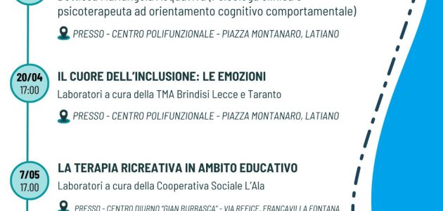 L’iniziativa nasce dalla collaborazione tra TMA – Terapia Multisistemica in Acqua, Cooperativa Sociale L’Ala, Comune di Latiano, Istituto Comprensivo di Latiano e Comune di Oria.