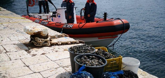 Nel dettaglio, i militari della Guardia Costiera di Brindisi hanno intercettato pescatori di frodo, in sosta con natanti in legno all’interno del canale di scarico delle acque di raffreddamento degli impianti del petrolchimico ENI, nel porto medio di Brindisi. I militari, quindi, hanno proceduto a contestare gli illeciti amministrativi connessi all’esercizio della pesca sportiva in zona vietata ed al superamento del limite di 5 chilogrammi imposto per tale fattispecie di pesca, comminando la sanzione amministrativa di circa 17.000,00 euro al trasgressore, in proporzione al quantitativo eccedente il limite consentito. Il pescato, costituito da circa 200 kg di cozze nere e circa 9 kg di murici è stato sequestrato e, su disposizione del veterinario, rigettato in mare perché vitale.