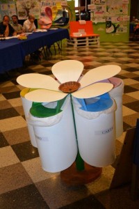 progetto: La creatività nel riciclo: contenitori creativi per riciclo a forma di fiore e di razzo e tavole fotografiche dedicate al percorso didattico.