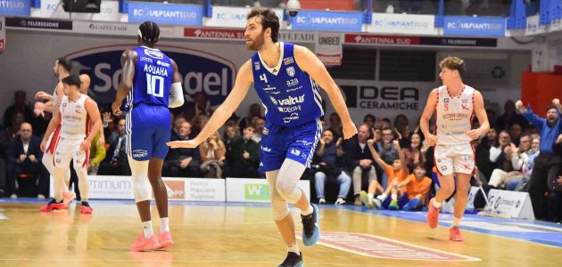 Quinta vittoria consecutiva per la Valtur Brindisi nel big match della sedicesima giornata contro Pesaro, agganciata in vetta in classifica dai pugliesi e da Verona, potendo contare ancora su una partita da recuperare per la Valtur (a Rieti il 17 dicembre). Atmosfera delle grandi occasioni e tensione in campo tra le due squadre che non vivono la migliore serata al tiro della loro stagione, un match equilibrato e deciso dalla tripla del sorpasso di Francis a 13” dal termine. Quattordici volte il punteggio in parità, undici controsorpassi e vittoria al fotofinish al PalaPentassuglia. MVP del match Gabriele Miani, decisivo nei 23 minuti in campo uscendo dalla panchina, con 15 punti a referto, 8 rimbalzi, 2 assist per una valutazione finale pari a 20.