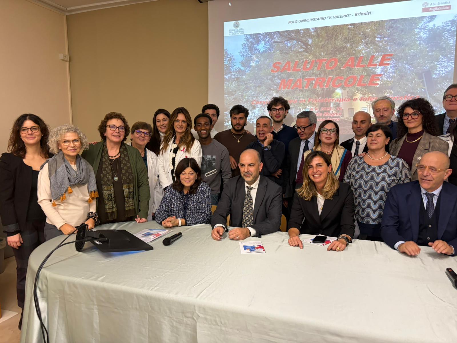 L’aula magna del Polo universitario Vittorio Valerio dell’ex ospedale Di Summa questa mattina era piena per il saluto delle autorità agli studenti delle facoltà di Infermieristica e Fisioterapia. A dare il benvenuto alle 100 matricole di Infermieristica e alle 45 di Fisioterapia nella comunità della sede distaccata dell’università di Bari, introdotti da Sandra Fersini, dirigente responsabile dell’unità di Formazione aziendale e universitaria, Qualità della Asl, c’erano il direttore generale della Asl Brindisi Maurizio De Nuccio, la delegata del Magnifico rettore dell’università barese Gabriella Elia, il presidente della Scuola di medicina Alessandro Dell’Erba, il vicepresidente facente funzioni della Provincia di Brindisi Giuseppe Ventrella, il sindaco di Brindisi Giuseppe Marchionna, la coordinatrice dei corsi di laurea Gabriella Chionna, i rappresentanti degli ordini degli infermieri e dei fisioterapisti, Annamaria Guarini e Annamaria Zaccaria, la consigliera regionale Isabella Lettori, il professore e direttore dell’Uoc di Nefrologia dell’ospedale Perrino Luigi Vernaglione, insieme al direttore del Cirpas e responsabile del master in Management del settore sociosanitario del Polo universitario brindisino Alberto Fornasari, al professor Vito Grazio La Volpe e alla presidente dell’Opi Brindisi Paola De Biasi.