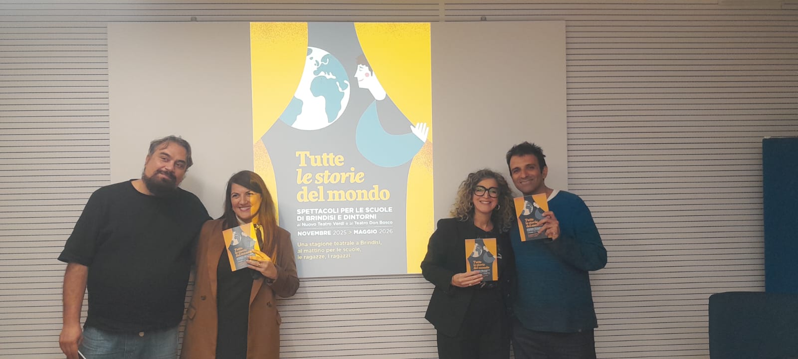 Si è tenuta ieri, presso il Mediaporto di Brindisi, la presentazione ufficiale della quarta edizione della rassegna “Tutte le storie del mondo”, il cartellone teatrale interamente dedicato alle scuole di ogni ordine e grado della città di Brindisi e della sua provincia che si svolgerà nei due teatri della città: il Nuovo Teatro Verdi e il Teatro Don Bosco.