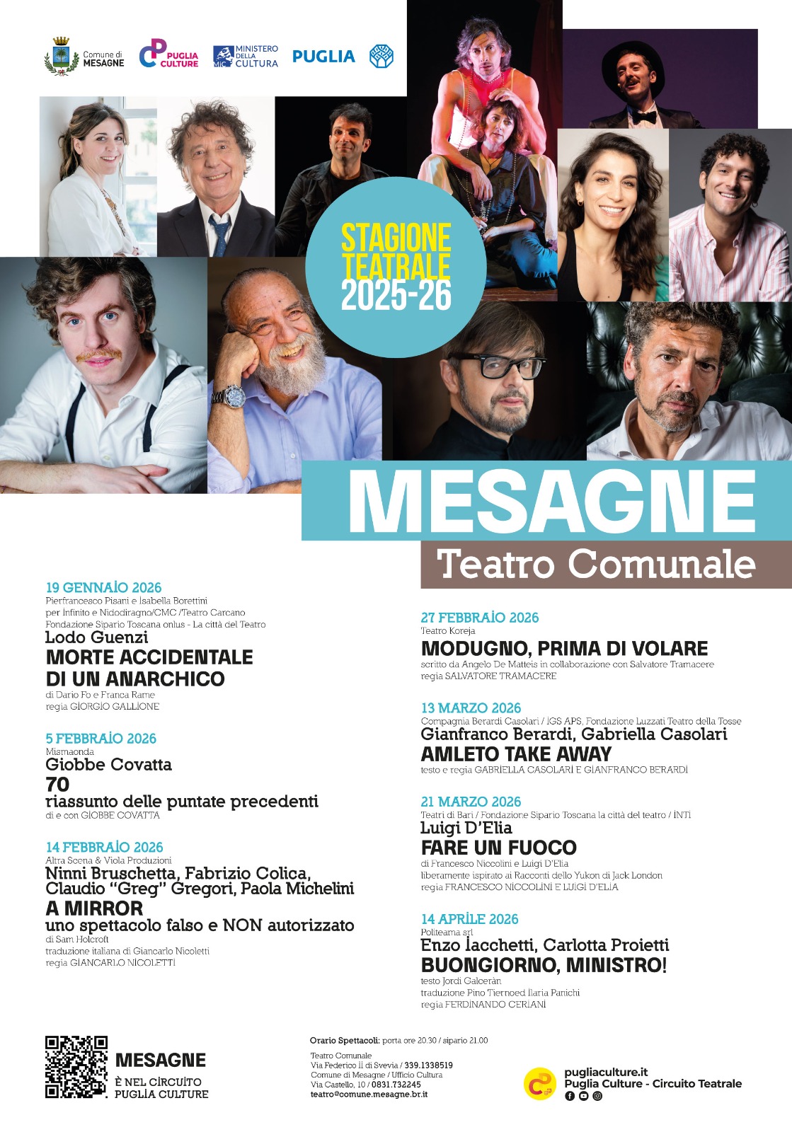 Una stagione di grandi interpreti e di domande necessarie, in cui il Teatro Comunale di Mesagne riafferma la propria vocazione: essere luogo di pensiero condiviso, di emozione e di libertà.