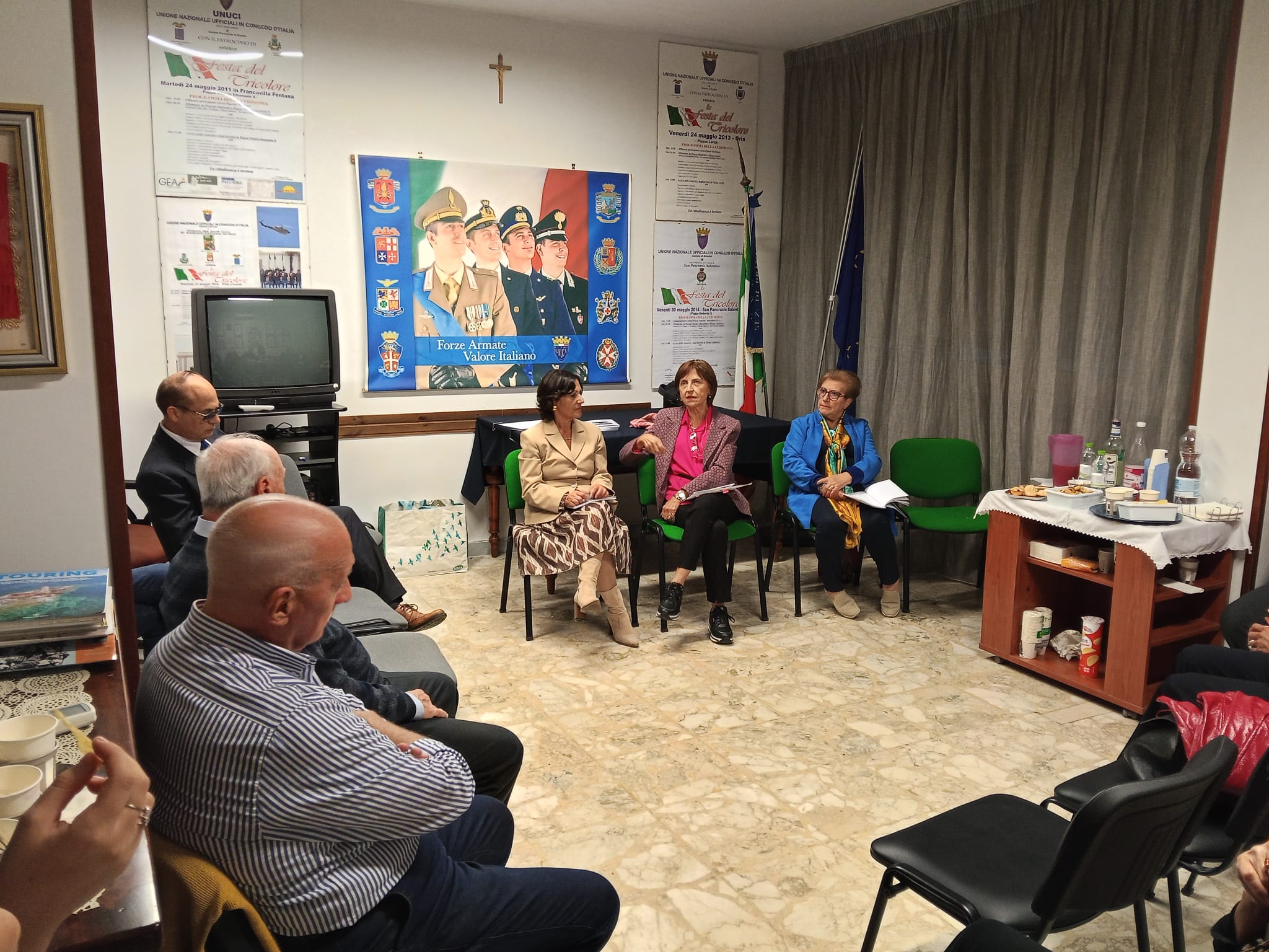 Dopo l’Inno di Mameli, si è dato inizio all’incontro, primo di questo nuovo anno sociale, con la presentazione della serata e il saluto ufficiale ai presenti da parte del Presidente Ten. CC. Giovanni Convertini, cui è seguita la presentazione dell’autrice da parte della Professoressa Iolanda Monteverdi, che ha intessuto il dialogo con la sopracitata autrice: dai riti del sud quasi mitici, al senso della famiglia come luogo sacro, alla narrazione per fotogrammi nel racconto centrale, alle figure femminili forti e decise, vere e proprie “matriarche” della società contadina salentina del primo Novecento, ai ritmi e nomi di ascendenza classica, si sono sviscerati i vari aspetti del libro, favorendo la conversazione e gli interventi del pubblico, intervallati dalla sapiente lettura di alcuni passi da parte della Professoressa Maria Roma.