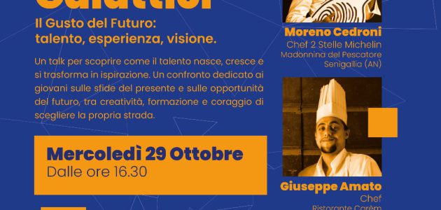 Mercoledì 29 giugno, dalle 16,30 ci sarà un incontro dal titolo “Il Gusto del Futuro: talento, esperienza, visione”, un talk per scoprire come il talento nasce, cresce e si trasforma in ispirazione. Un confronto dedicato ai giovani sulle sfide del presente e sulle opportunità del futuro, tra credulità, formazione e coraggio di scegliere la propria strada.