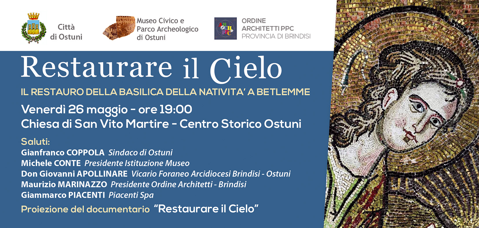 Venerdì 26 maggio alle ore 19 presso la Chiesa di San Vito Martire nel centro storico di Ostuni sarà proiettato il documentario “Restaurare il cielo”.