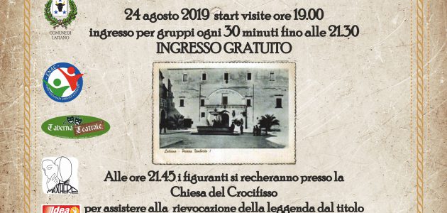 Nell’ambito del cartellone estivo della Città di Latiano e della festa patronale del SS. Crocifisso, si terrà Sabato 24 Agosto p.v. un appuntamento culturale da non perdere. L’Amministrazione Comunale con l’Associazione Karibuni – Circolo E.N.A.C. con il Patrocinio dell’ Ente Nazionale Attività Culturali e con la collaborazione dell’ Associazione Culturale “Taberna Teatrale” di Latiano, ha programmato, coinvolgendo una rete di attori nell’ambito dell’associazionismo e della cittadinanza attiva, un’evento unico nel suo genere. “INVITO A CORTE” visite guidate in costumi d’epoca.