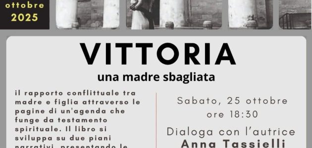 Il 25 ottobre alle ore 18.30 presso la Casa di Quartiere Minimus sara’ presentato il libro “Vittoria una madre sbagliata”, edito Il Raggio Verde di Anna Leo – sociologa e scrittrice.