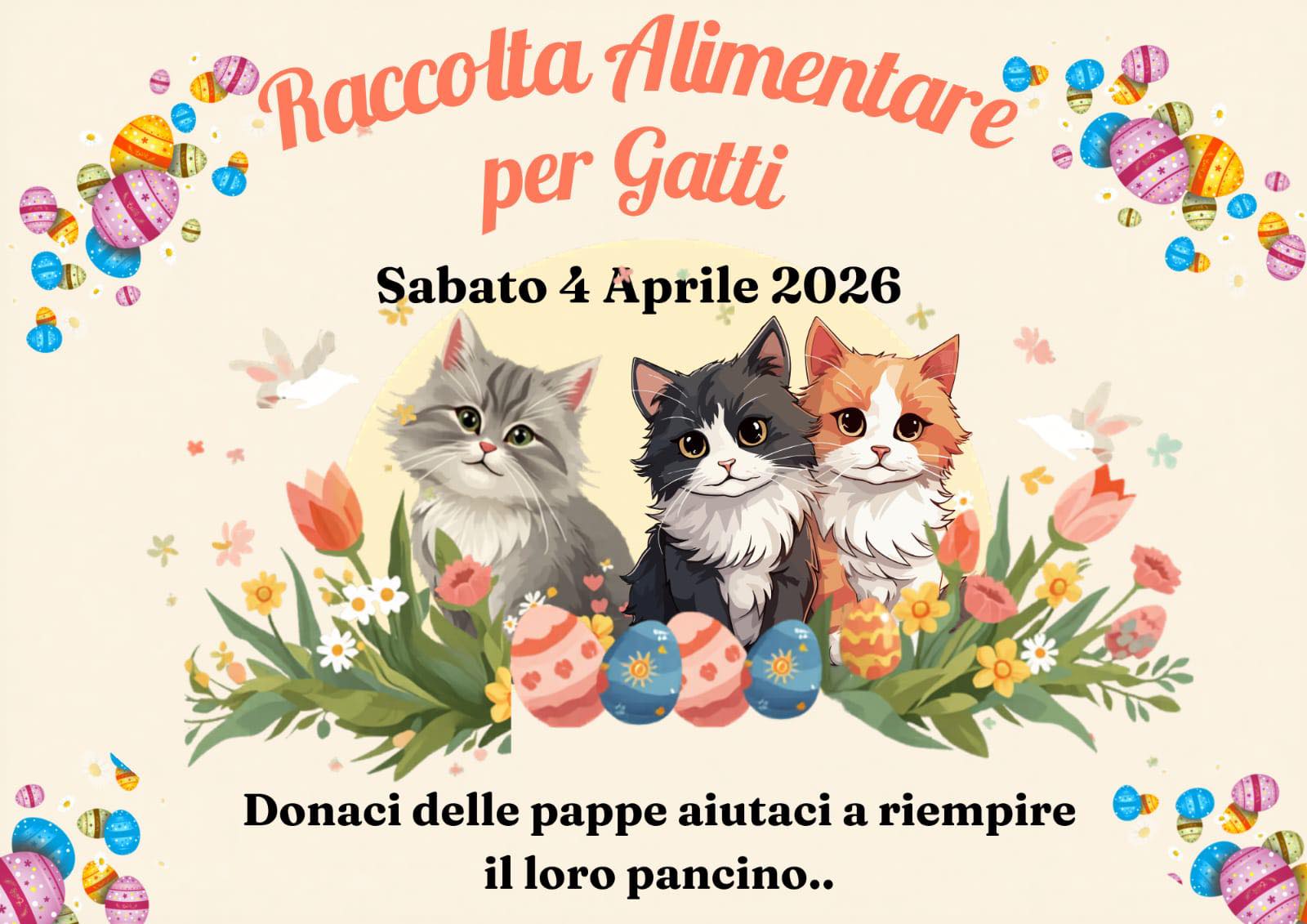 In vista della Pasqua, un gesto concreto di solidarietà arriva dai volontari che ogni giorno si prendono cura dei gatti randagi e delle colonie feline del territorio. È stata infatti organizzata una raccolta alimentare dedicata proprio a loro, animali spesso invisibili ma seguiti con costanza, amore e grande senso di responsabilità.