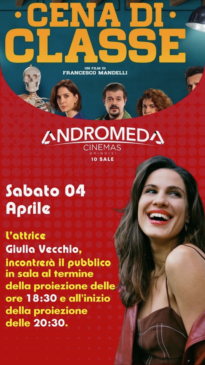 Sabato 4 aprile è in programma una serata evento con la proiezione del film Cena di Classe, arricchita dalla presenza in sala dell’attrice Giulia Vecchio, protagonista dell’incontro con il pubblico.