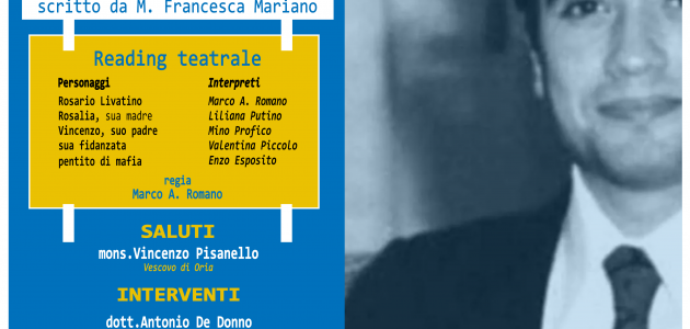 Sabato 7 agosto 2021, alle ore 20.30, nel Santuario di San Cosimo alla Macchia in Oria (Br) la compagnia “Témenos – recinti teatrali” porterà in scena il reading teatrale “Il giudice Rosario Livatino” scritto da Maria Francesca Mariano e diretto da Marco Antonio Romano.