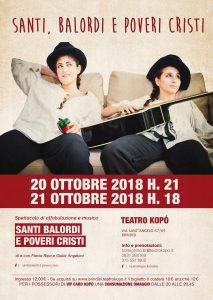 Il Teatro Kopó inaugura la nuova Stagione 2018/2019 presentando Santi, balordi e poveri cristi di e con Giulia Angeloni e Flavia Ripa, in scena sabato 20 ottobre alle 21 e domenica 21 alle ore 18.