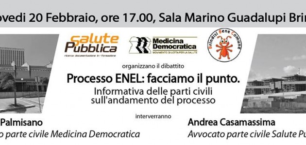 Salute Pubblica, Medicina Democratica e Brindisi Bene Comune organizzano giovedì 20 febbraio alle
