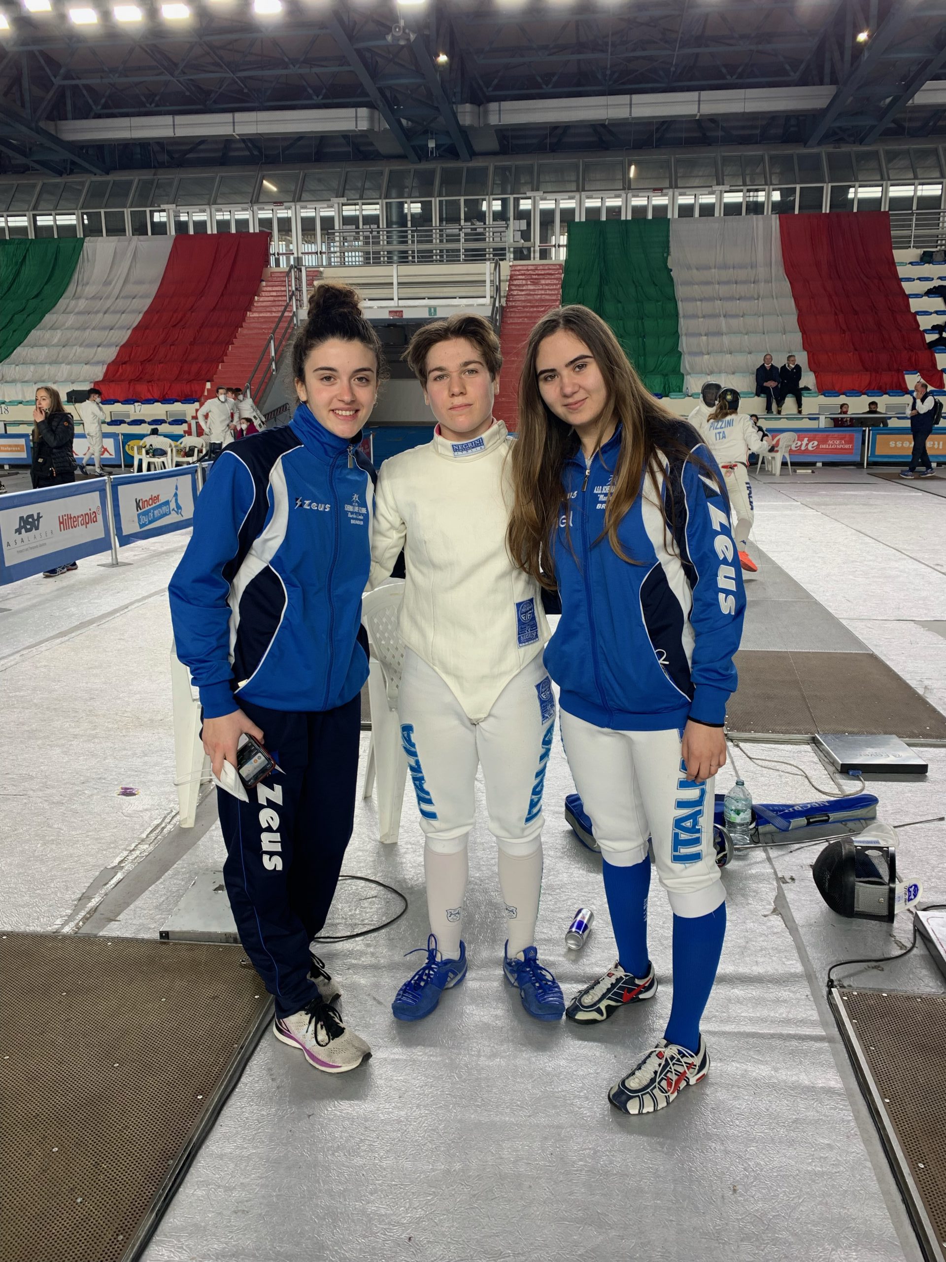 Al PalaVesuvio di Napoli oggi sono state 144 le atlete in pedana, con le medaglie olimpiche Rossella Fiamingo e Alberta Santuccio a guidare il ranking. La giornata per la Società “ASD Scherma Lame Azzurre Brindisi Maestri Zumbo” è di quelle memorabili e a distinguersi in questa impegnativa prova è stata Chiara Maestoso, che ha sfiorato il podio, battuta dalla Pizzini delle FFO Roma, per 15-11 e classificandosi 8^. Grandissimo risultato che è frutto di tanto lavoro e preparazione portata avanti negli anni senza mai demordere e a cui i maestri Zumbo Flavio e Alessandro Rubino esprimono un enorme plauso. A questo si aggiunge l’ottimo piazzamento di Miriana Morciano che ha sfiorato l’accesso al tabellone delle prime 16 della gara fermata per 15-12 dalla Ferracuti e giungendo 18^. (Si vola dunque verso i Tricolori Assoluti 2022 che si svolgeranno dal 31 maggio al 5 giugno a Courmayeur). Buono anche l’impegno dimostrato da Chiara Panzera che ha partecipato al fianco delle sue compagne di squadra.