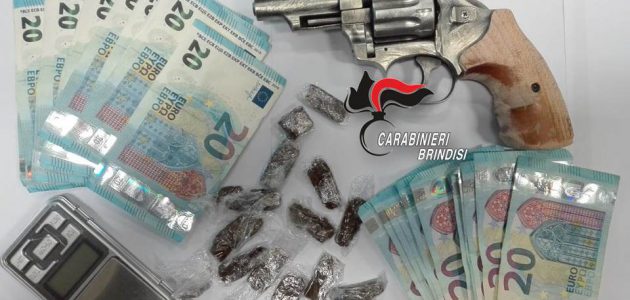 Il 38enne è stato tempestivamente fermato e controllato e contestualmente sottoposto a perquisizione personale e della sua autovettura, e trovato in possesso di una pistola revolver a salve, priva di tappo rosso, con la canna modificata e smerigliata, nonché 15 dosi di hashish, per complessivi 22 grammi, un bilancino di precisione e la somma contante di 880€, composta da 44 banconote da 20€ false, il tutto sottoposto a sequestro.
