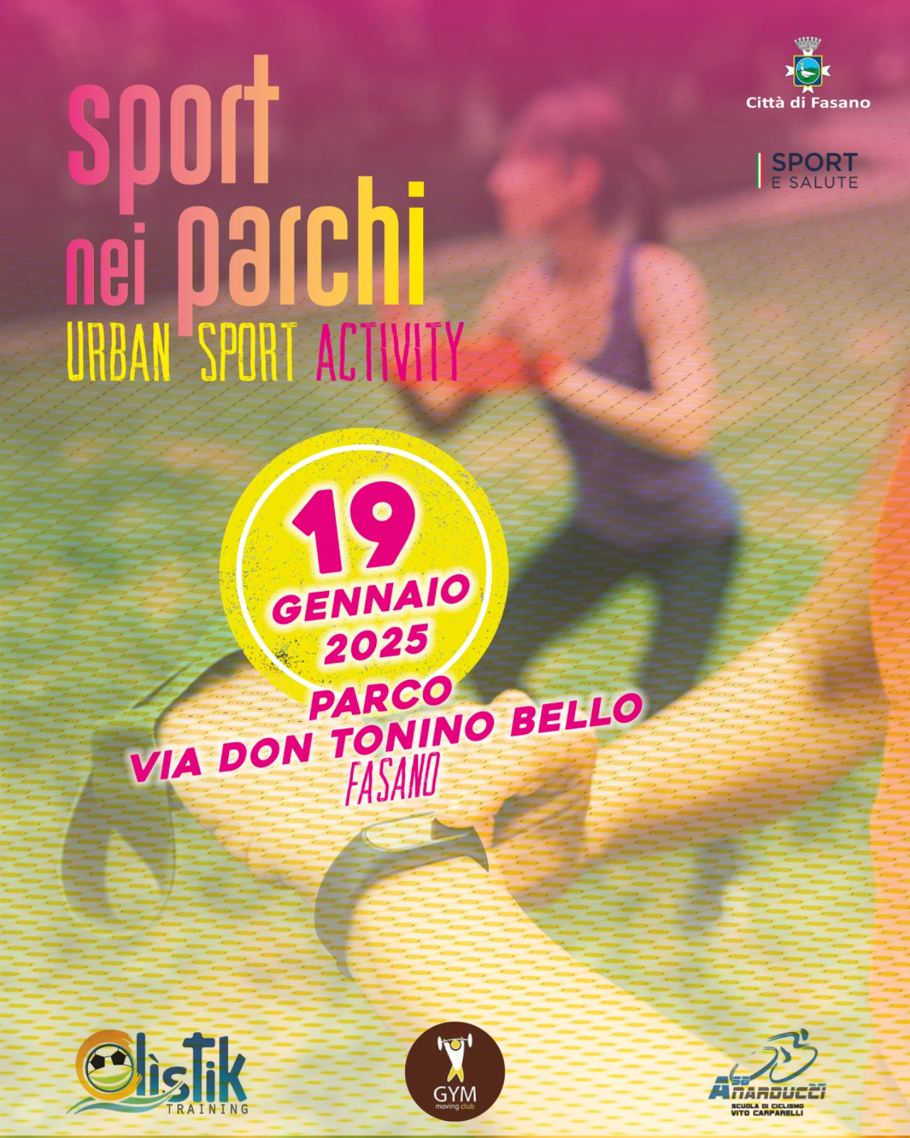 Si svolgerà domenica 19 gennaio, l’evento conclusivo del progetto Sport nei Parchi «Urban sport activity e weekend» promosso da Sport e Salute e Comune di Fasano insieme a Olistik training, scuola di ciclismo Antonio Narducci e Gym Moving club.