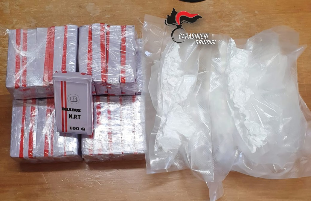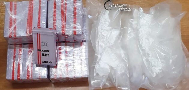 Nel bagagliaio, all’interno di uno scatolone sigillato, sono stati rinvenuti 3,1 chilogrammi di hashish e 500 grammi di cocaina, confezionati in buste sottovuoto. La droga è stata sequestrata, mentre l’uomo è stato condotto presso la Casa Circondariale di Brindisi a disposizione dell’Autorità Giudiziaria.