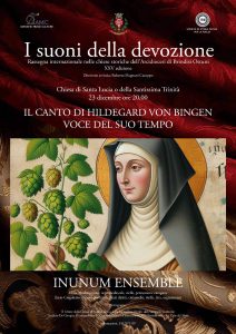 Proporla all’interno della XXV edizione de I suoni della Devozione ideata dal 1999 da Roberto Magnani Caroppo nell’antica chiesa di Santa Lucia o della Santissima Trinità costituisce un piccolo rito evocativo che mette in contatto con un Medioevo che non appare affatto buio, bensì vibrante, femminile, coraggioso.
