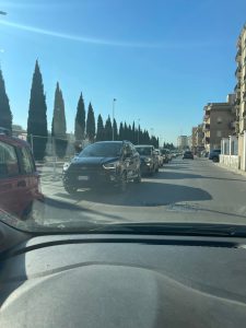 Dalle immagini si nota come la presenza dei lavori abbia ristretto la carreggiata, obbligando il traffico a rallentare fino quasi al blocco completo. Una situazione resa più critica dalla concomitanza con l’orario di punta, quando centinaia di famiglie si spostano per accompagnare i figli a scuola.