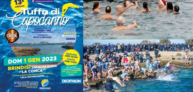 Grandi aspettative e gradite conferme stanno caratterizzando sempre di più questa prima edizione libera dalle restrizioni alla pandemia, che ad oggi ha registrato l’adesione di oltre 218 tuffatori iscritti (di cui 75 donne e 14 minori). Si viaggia quindi verso l’obiettivo numerico dell’edizione 2023, il superamento di iscrizioni raggiunte nel Capodanno 2022, il più alto di sempre con 258 adesioni. Una ulteriore soddisfazione per il gruppo “Summer Time – Animazione & Spettacolo” di Ilaria Lenzitti e Nico Lorusso, che firma l’organizzazione dell’evento in collaborazione con “Puliamoilmarebrindisi” rappresentato da Alessandro Barba, Il Nautilus di Salvatore Carruezzo e “Uniti per lo Sport” Brindisi e l’illustre partenariato del Main Sponsor DealGroup Brindisi.