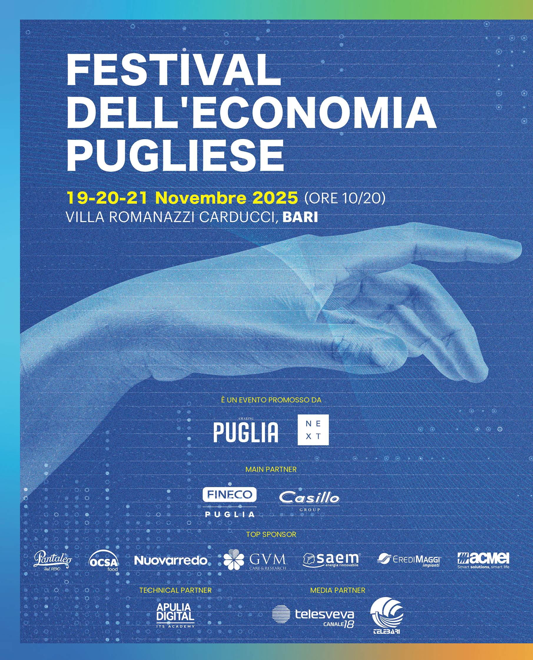 Qual è lo stato dell’economia pugliese, e soprattutto, che futuro attende i vari settori che la animano? A queste domande cercheranno di dare risposta i 27 appuntamenti in programma alla seconda edizione del Festival dell’Economia Pugliese, organizzato dal magazine Amazing Puglia, che si terrà il 19-20 e 21 novembre a Villa Romanazzi Carducci (Bari).