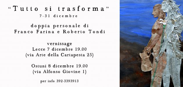 Tutto si trasforma è il titolo di una mostra che coinvolge due artisti pugliesi Roberto Tondi con una selezione delle opere Stone painting e Franco Farina con altrettante opere della collezione Agrodolce.