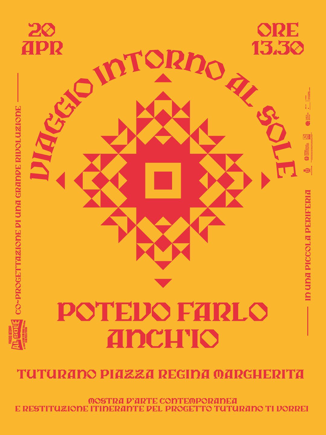 Lunedì 20 aprile, dalle ore 13.30 alle ore 14.30, Piazza Regina Margherita – antistante la Biblioteca sociale Enzo Cosma di Tuturano – ospita l’evento conclusivo del percorso “Tuturano Ti Vorrei”. L’appuntamento, aperto alla comunità, rappresenta un momento di scambio per raccontare il progetto e visitare la mostra d’arte contemporanea “Potevo farlo anch’io”, esposizione itinerante allestita tra le strade principali della frazione brindisina.