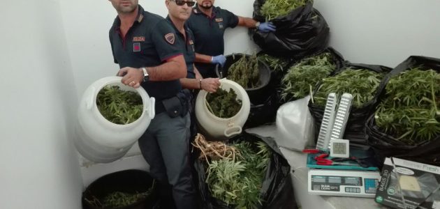 La perquisizione ha portato alla luce che i tre stavano confezionando ingenti quantità di marijuana e che la baracca fosse un vero e proprio laboratorio di essiccatura e lavorazione della droga, coltivata in un campo a poca distanza dal manufatto, da immettere sul mercato locale.