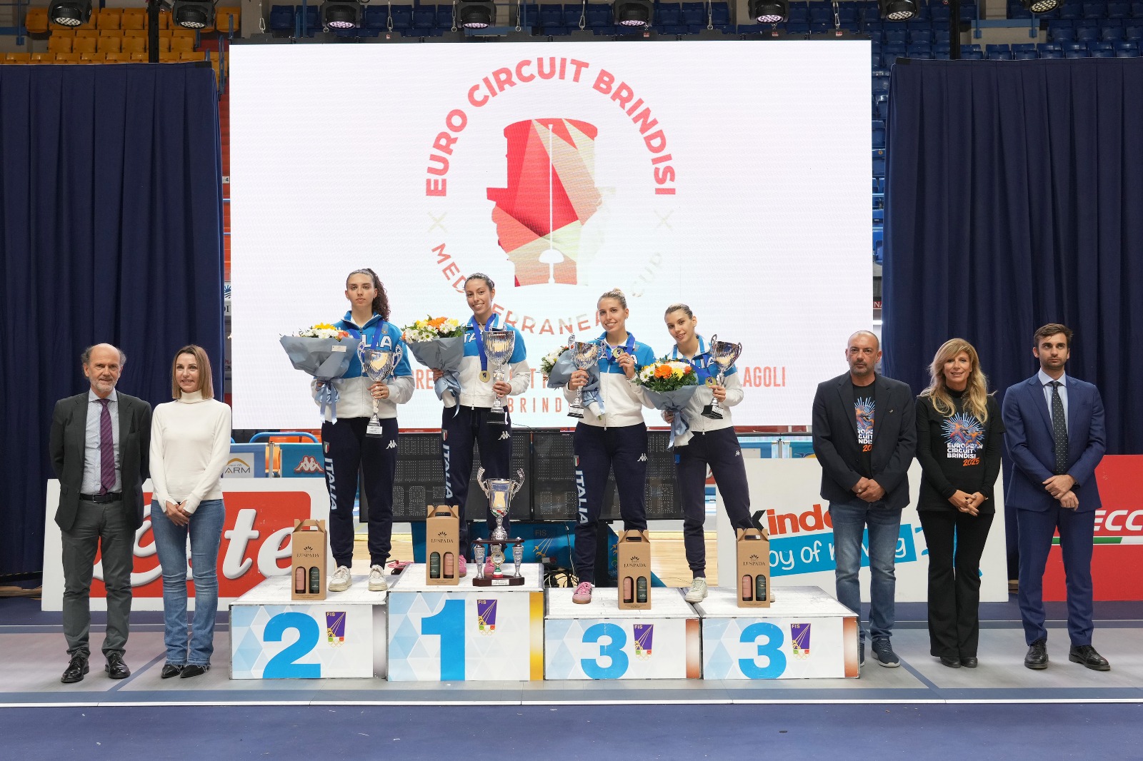 Dopo il trionfo tutto italiano nella spada maschile di sabato (1) Matteo Galassi – 2) Simone Mencarelli – 3) Marco Francesco Locatelli e Nicolò Del Contrasto), la domenica ha regalato un altro successo azzurro nella spada femminile. Sul podio della Coppa del Mediterraneo – prova femminile, tutte atlete italiane: 1) Vera Perini – 2) Carola Maccagno – 3) Gaia Caforio e Vittoria Siletti.