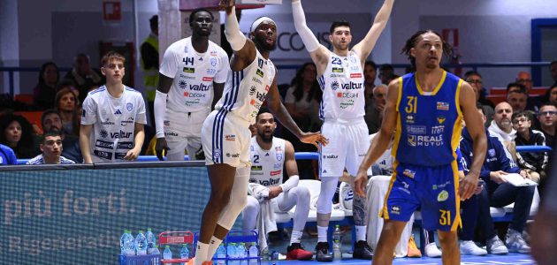 Con il recupero di Miani dopo il forfait dell’ultima partita, coach Piero Bucchi torna al quintetto ideale formato da Cinciarini-Copeland-Radonjic-Esposito-Vildera. Partenza lanciata degli ospiti per un parziale di 0-6 nei primi due minuti del match ma con pazienza la Valtur entra in partita mettendo in ritmo i propri lunghi Esposito e Vildera (10-10 al 7’). L’ingresso di Francis e Miani regala il primo vantaggio ai biancoazzurri che innestano le marce alte a fine primo quarto per chiudere in vantaggio sul 22-18. Le energie dalla panchina portano la Valtur al vantaggio in doppia cifra sfruttando il migliore impatto rispetto alla ‘second unit’ avversaria e con un break di 18-2 scappano via sul 37-20 al 17’. Esposito mette in mostra tutto il suo repertorio in post basso e a fine primo tempo il punteggio recita 48-32. Non cambia il copione al rientro in campo, dove Brindisi domina sotto i tabelloni potendo sprigionare forza ed atletismo a proprio vantaggio con il duo Esposito-Vildera (62-37 al 25’). Torino batte un colpo a fine terzo quarto ritrovando i punti di un silente Teague per un mini parziale sul 69-52. Il rientro in campo di Vildera consente alla Valtur di ritrovare solidità sotto canestro nel duello contro Cusin, vinto largamente dal centro biancoazzurro. Le triple di Mouaha e Francis legittimano una larga e meritata vittoria per la Valtur Brindisi che nel finale fa esordire il giovane Corlianò, fresco vincitore del campionato regionale Under 17 Eccellenza con i suoi compagni.