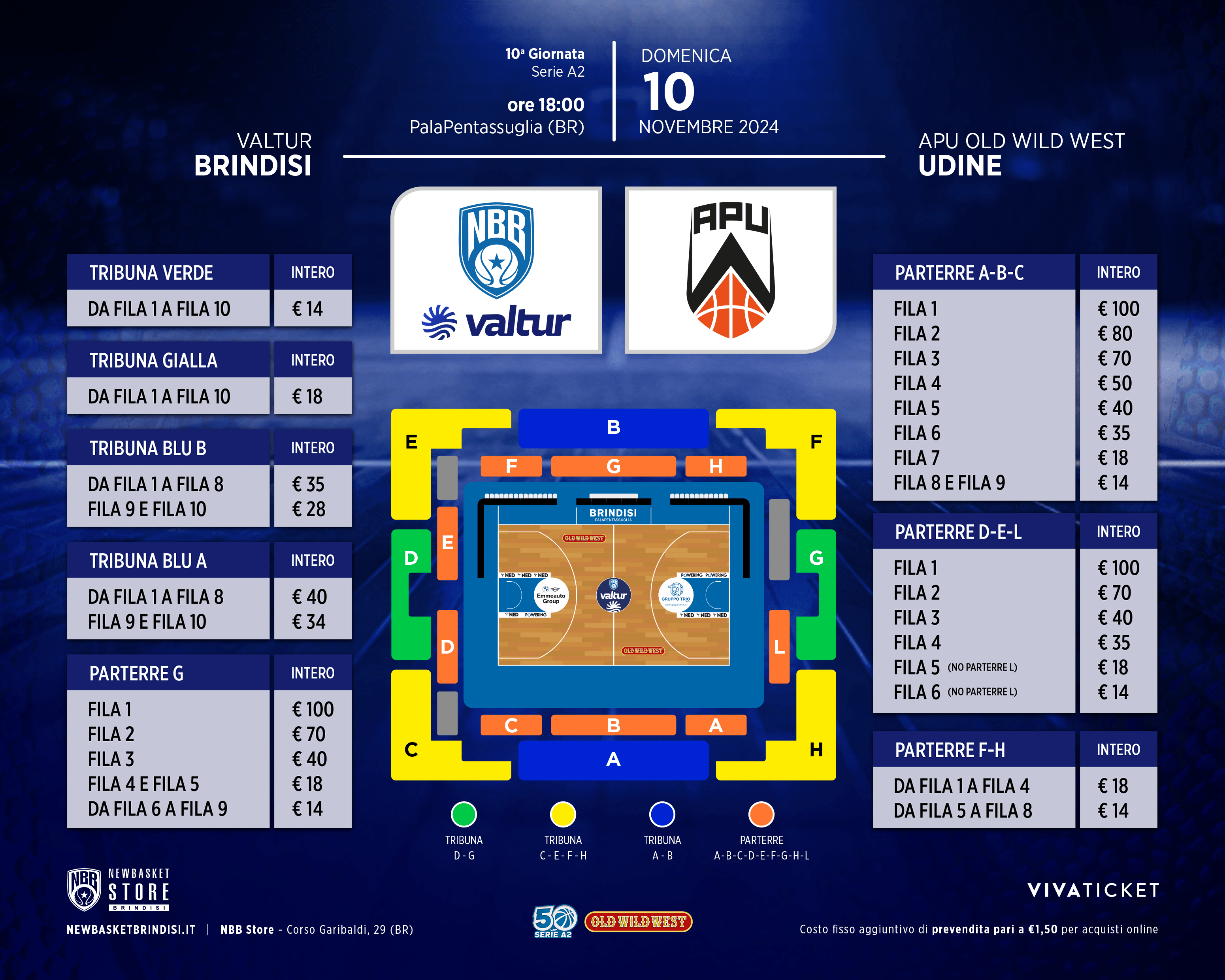 • Valtur Brindisi vs Apu Old Wild West Udine – domenica 10 novembre 2024 ore 18:00 | CAT. A |