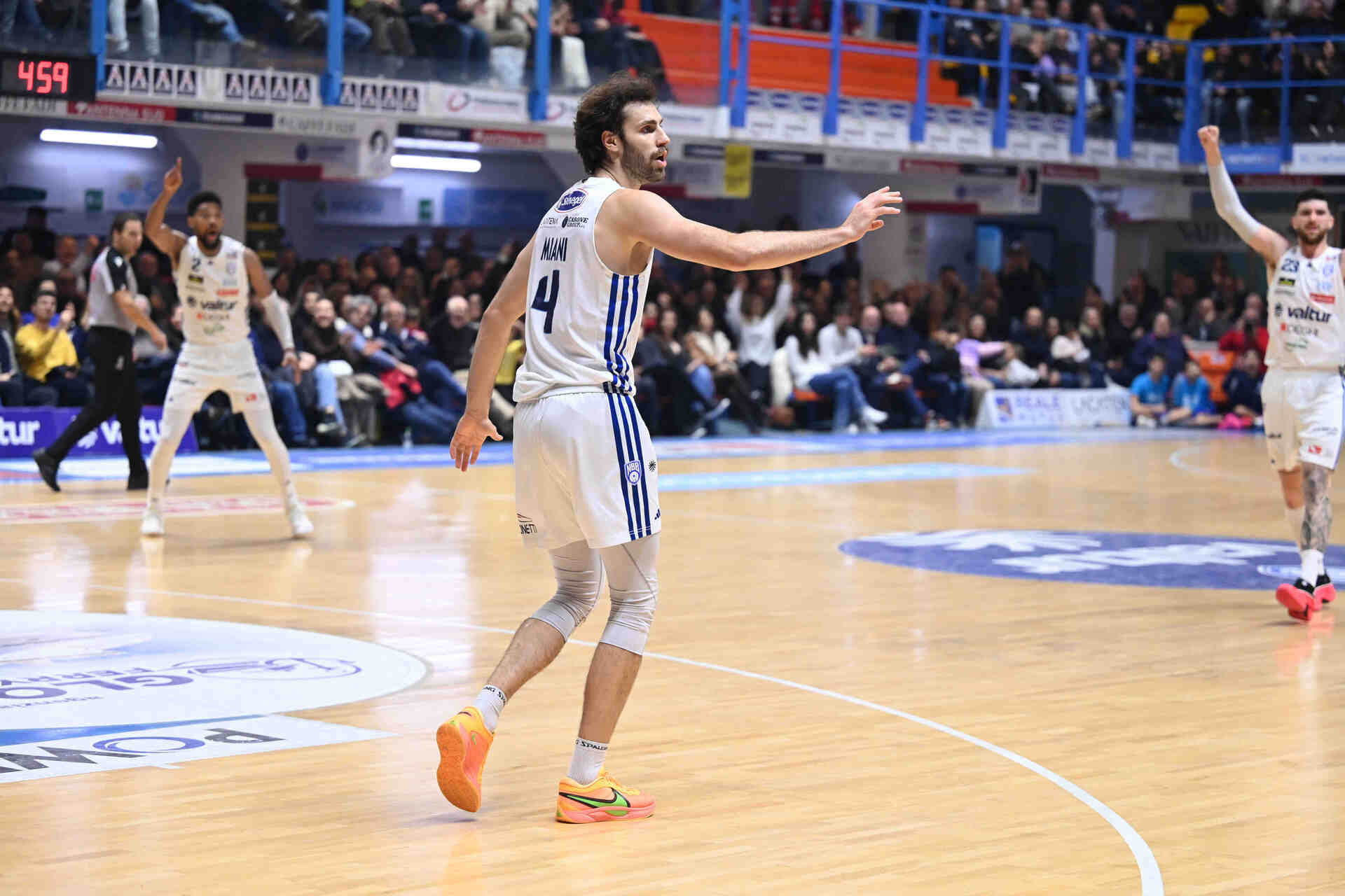 VALTUR BRINDISI: Copeland 15 (0/2, 3/11, 3 r.), Cinciarini 15 (3/5, 2/3, 3 r.), Francis 10 (3/4, 1/7, 1 r.), Mouaha 2 (0/2, 1 r.), Vildera 20 (9/11, 5 r.), Miani 7 (1/1, 1/3, 4 r.), Esposito 10 (4/5, 1 r.), Radonjic 7 (1/1, 1/4, 8 r.), Maspero ne, Fantoma 2 (1/1). Coach: Bucchi.
