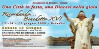 “Una città in festa, una Diocesi nella gioia. Ricordando… Benedetto XVI”. Sarà questo il filo conduttore delle iniziative organizzate dalla Diocesi per celebrare il primo anniversario della storica Visita Pastorale di Benedetto XVI alla Chiesa di Brindisi-Ostuni.