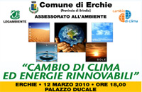"Cambio di clima ed energie rinnovabili" è il tema di un convegno organizzato dall'Assessorato all'Ambiente del Comune di Erchie (Brindisi) per Venerdì 12 Marzo, alle ore 18.00 presso Palazzo Ducale.