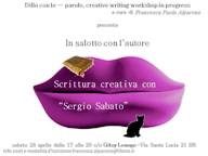 Dopo il successo della rassegna “Degustazione di scrittura creativa”, Francesca Paola Alparone giornalista e formatrice di esperienza, organizza sabato 28 aprile dalle 17-20 presso Gitzy Lounge - via Santa Lucia 21 (Brindisi), “In salotto con l’autore”, un workshop di scrittura creativa con lo scrittore Sergio Sabato e il Suo “Goodnight Brindìsi” (Siraldi Editore). “In salotto con l’autore”, trae spunto dai “salotti letterari” di antica memoria, che si sono sempre riproposti nel tempo ed in ogni luogo, là dove un fermento intellettuale aveva origine. Così come in quei salotti, il dialogo, la circolarità intellettuale e la scrittura creativa, saranno i contenuti del workshop, dedicato ad enucleare le regole e le strategie della scrittura, mediante una riflessione esperienziale ed in compagnia dell’autore Sergio Sabato.